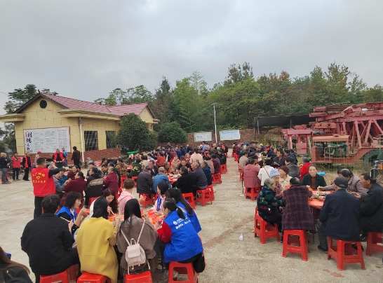 午餐时分,30桌敬老宴准时开席,饭菜香气扑鼻。老人们围坐在一起,一边品尝美味佳肴,一边观戏忆旧、畅谈家常,脸上满是幸福的笑意。一位九旬老人动情感慨:“活了这么大岁数,从没吃过这么热闹的敬老宴,感谢党委、村委,感谢好心人、志愿者,你们比亲人还想得周到!”村民们也纷纷为活动点赞:“志愿者们忙前忙后,对老人照顾得无微不至,让我们真切看到了党员的担当与奉献。”
