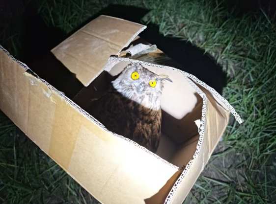 为确保雕鸮的安全,民警立即将其带回并进行细致检查。检查结果显示,雕鸮身体无外伤,精神状况良好,且进食正常。在持续观察并综合评估其恢复情况后,民警认为其已具备野外生存能力,遂选择适宜地点将其放归自然。