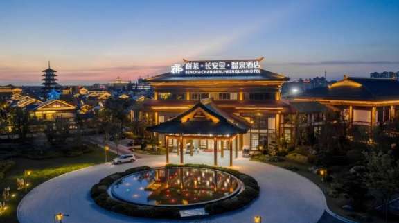 同期获奖的长安里温泉酒店,则以 “四维融合” 模式为传统温泉酒店转型提供 “可复制样本”。酒店依托 2500 米深层优质温泉资源,以 “唐风文化 + 智慧科技” 为双引擎,打造多元化体验场景:主题化房型矩阵覆盖汤屋别院、电影主题客房、温泉客房,33 个特色泡池提供瑶药浴、红酒浴等定制化服务,全流程智能化系统提升入住便捷度,唐风夜宴、非遗手作等活动则深化文化沉浸感。开业至今,酒店节假日满房已成常态,更通过水资源循环利用、节能灯具普及等绿色运营举措,践行低碳文旅理念,其 “温泉 + 康养”“温泉 + 研学” 的跨界模式,进一步拓展了温泉文旅的价值边界。