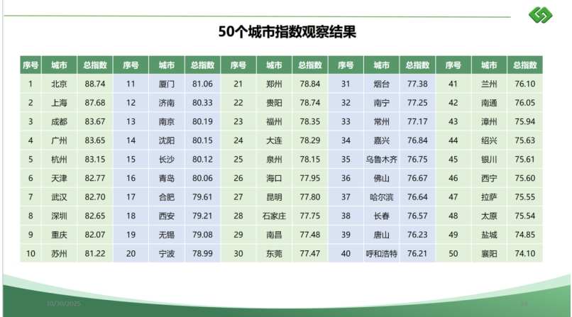区域发展格局上,华北、华南、西南依托双要素优势领跑,京津冀城市带动华北指数显著提升;北上广持续稳居前五,杭州、成都跻身新一线城市前列,厦门、沈阳、石家庄分别进步4名、10名、17名,成为二线城市中的“黑马”。