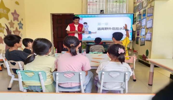 西部计划志愿者在儿童之家给留守儿童宣传“防溺水知识”(马勋艳摄)