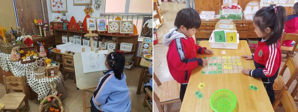 参会人员走进班级,沉浸式观摩室内区域游戏。孩子们或沉浸在科学实验中、或投入在多元的阅读区中、或醉心于艺术创造,教师们细致观察倾听、适时引导,生动展现了“以儿童为本”的教育理念,让参会者直观感受幼儿在自主游戏中的学习与成长。