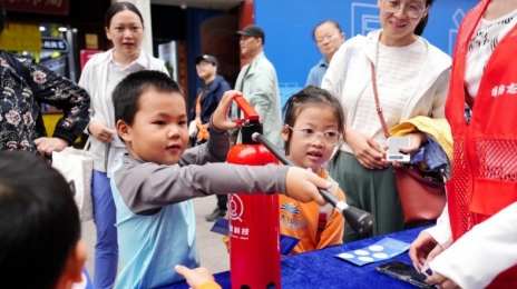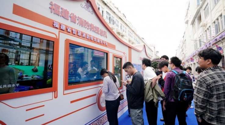 7米多高的“福吉”在路口向过往群众不停“招手”,憨态可掬的模样让再匆匆的脚步也不由自主地慢了下来。穿梭在5大展区间,消防安全科普“有得看、有得学、有得玩”。高精尖装备和云梯消防车展示、无人机表演、消防时装秀、搜救犬表演展示消防“硬实力”;签到兑奖、“福吉”玩偶合影、文创展示、留言互动勾起群众参与热情;住建、电力、燃气、地震、网信部门也来到活动现场,通过图文视频、模拟演示、体验互动等形式向群众进行科普宣传,蟳埔女簪花、漆扇制作等八闽文化特色体验项目也为现场带来一抹清新亮色。
