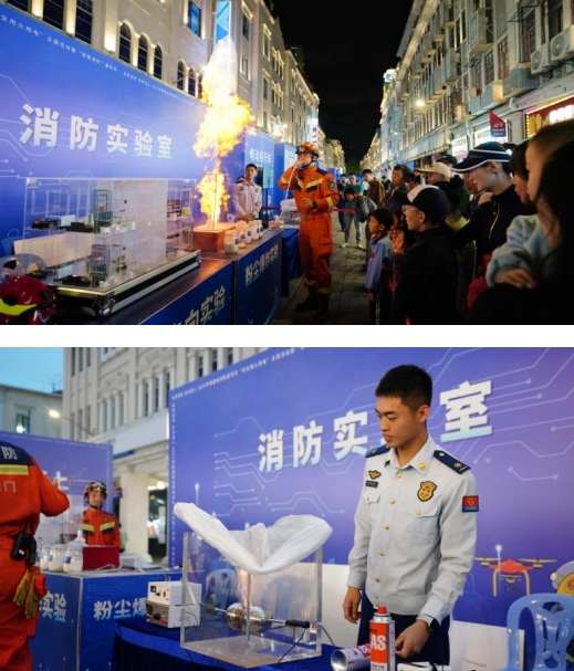 小粉尘为何引发大爆炸?民房发生火灾后浓烟如何流动?静电也会引发火灾吗?一系列实验装置向好奇的群众解答了火灾背后蕴含的科学原理。