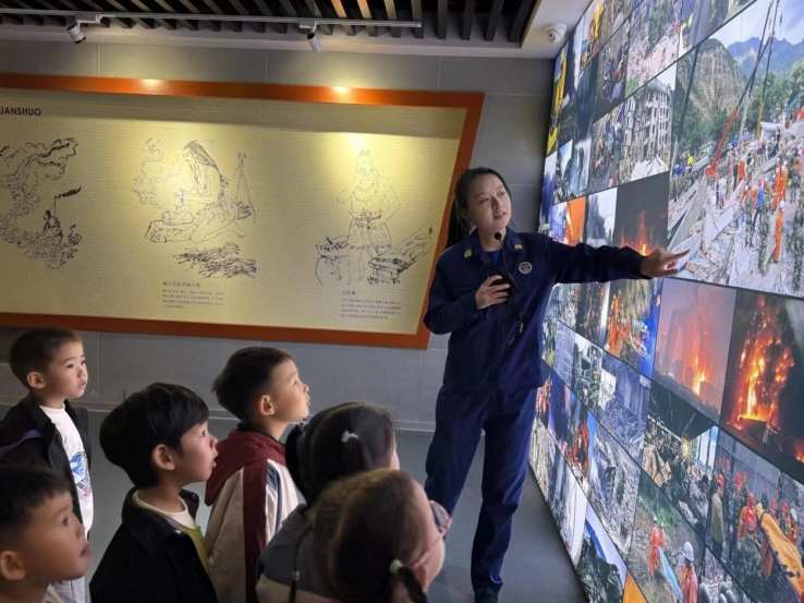 随后,师生们走进如东消防历史馆。一张张泛黄的老照片、一枚枚沉甸甸的荣誉勋章,生动诉说着消防队的光辉历程,让孩子们对消防员叔叔的崇敬之情油然而生。在消防科普体验馆内,孩子们通过互动体验扎实掌握实用技能:练习 “弯腰捂鼻贴墙走” 的标准逃生动作,模拟拨打 119 报警电话,在趣味问答中巩固 “报警需讲清地址”“不玩打火机” 等安全常识。