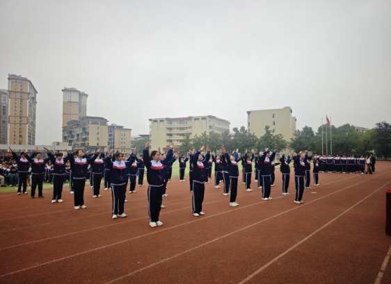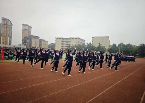 当熟悉而激昂的广播体操音乐响起,参赛的每一位同学迅速进入状态。从“伸展运动”的柔中带刚,到“跳跃运动”的活力迸发,每一个节拍都精准踩点,每一个动作都标准到位,每一处细节都彰显着日复一日的训练成果。整齐的队列、饱满的精神状态,不仅赢得了现场师生的阵阵掌声,更将十中学子的精神风貌定格在赛场之上。