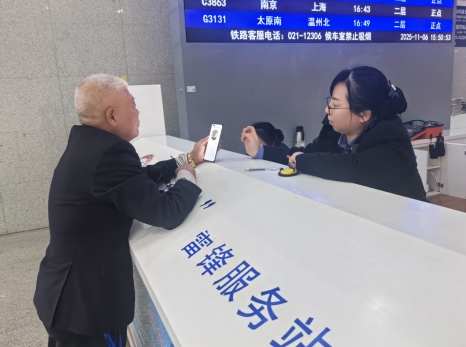 看似简单的购票服务,却是海安站雷锋服务站日常工作的缩影。据了解,虽然海安站规模不大,但站内的“雷锋服务站”早已成为老年乘客出行的“暖心驿站”——这里每天要接待至少100余名老年人的求助,需求五花八门:既有像缪大爷这样不会线上购票的,也有不清楚检票口位置、不熟悉候车流程的,甚至有老人因手机卡顿、操作失误等问题专程前来求助。无论何种需求,服务站的工作人员总能保持耐心,手把手帮忙解决,用专业与热情化解老人们的出行难题。