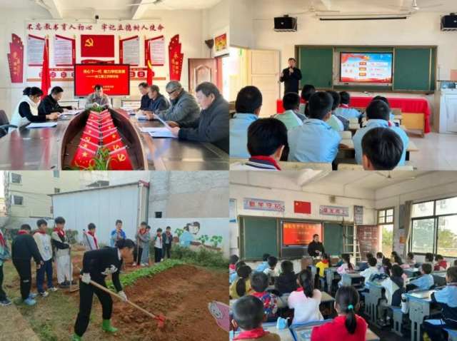宣讲现场亮点纷呈、暖意融融。三(3)班教室里,郭长生老师以《快乐的节日》熟悉旋律为切入点,通过识简谱、打节拍、鼓励学生上手弹琴等趣味互动,让艺术之种在孩童心底悄然萌发;劳动基地的菜畦旁,赖水清老师手把手示范松土、间苗技巧,细致讲解蔬菜生长规律,将“耕耘必有获”的劳动真谛融入实践体验;多媒体教室内,李坊银老师带领学生诵读爱国主义经典篇目,激昂深情的讲解与真挚恳切的寄语,让“为中华之崛起而读书”的信念在少年心中深深扎根。