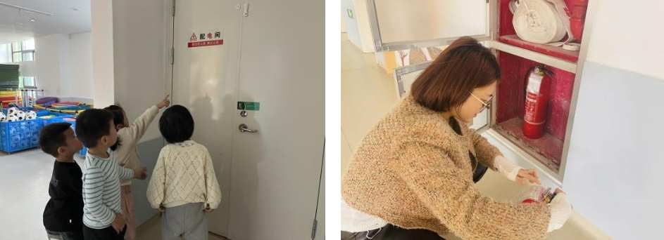 与此同时,校园 “安全排查小组” 同步行动。老师们重点检查消防器材、疏散通道、用电设施等关键区域,及时整改隐患;孩子们也化身 “小小监督员”,拉着老师的手仔细排查:“老师,这个插座没有盖好!”“楼梯转角的安全标识有点歪啦!” 稚嫩的声音里满是认真,形成了全员参与护安全的良好氛围。