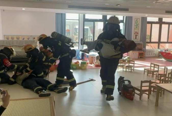 演练中,一名幼儿模拟 “被困” 教室,消防员迅速展开救援,用专业动作将 “被困” 幼儿安全救出。“消防员叔叔好厉害!” 现场响起阵阵掌声,孩子们在亲身体验中掌握了基本逃生技能,安全防护意识也得到进一步强化。