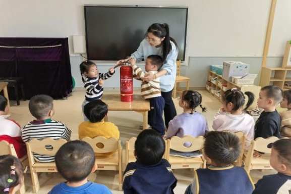 各班教室里,一场场 “消防知识大闯关” 热闹上演。教师们根据幼儿年龄特点,通过动画短片、情景问答、实物观察等形式,把抽象的消防知识变得通俗易懂。“灭火器是什么颜色?”“着火了要找什么标记?” 知识竞答环节,孩子们举着小手抢答,一个个像小博士般认真;绘画课上,他们用彩笔勾勒 “消防员灭火”“安全出口箭头”,把学到的知识变成五彩图画;手工时间里,“安全小设计师” 们剪剪贴贴,制作出专属安全标识,贴在教室角落提醒小伙伴。