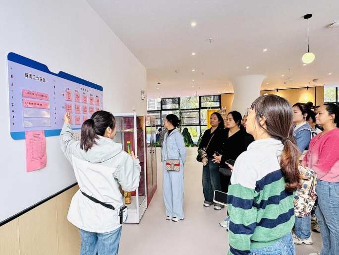 代表们沿着食材溯源展示区、切配加工区、烹饪操作区、食品留样柜至清洗消毒区的动线,细致核查食材采购验收、清洗切配、烹饪加工、餐具消毒等关键环节,直观了解食品留样规范、卫生管控标准及从业人员健康管理等落实情况,全方位解码幼儿园膳食安全管理体系。