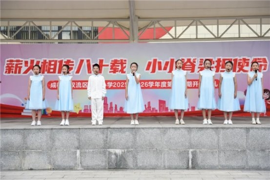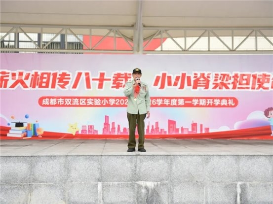 9月1日,成都市双流区实验小学(以下简称:双流实小)全体师生齐聚校园,开启一场承载着历史厚重与未来憧憬的开学第一课,“薪火相传八十载,小小脊梁担使命”,师生共赴新学期的诗与远方。