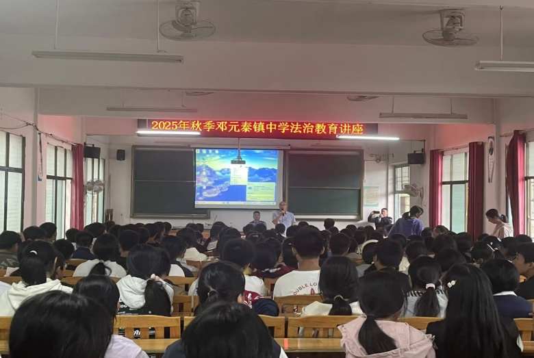 本网湖南讯(通讯员 王鑫龙 钟春雨)为助力校园法治建设,提高师生的法治意识和自我保护能力,保障学生的身心健康,9月12日上午,湖南省武冈市邓元泰镇中学开展“法治进校园,利剑护蕾助成长”为主题的法治教育活动。学校特邀邓元泰镇派出所教导员、邓元泰镇中学法治副校长王平为同学们带来一场别开生面的法治讲座。