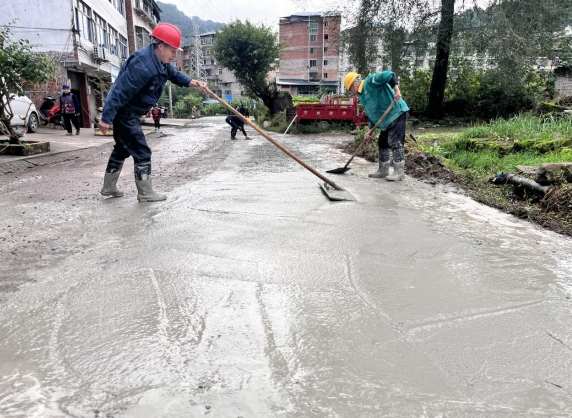 近日,在重庆忠县白石镇长寿河社区,社区工作人员与热心市民一起,正在抓紧平整路面,忙得不亦乐乎。