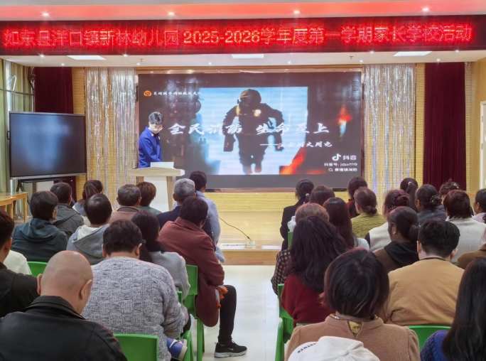 多功能厅内,三场干货满满的家长课堂轮番登场,为家长们送上科学育儿 “大礼包”。洋口镇消防队指导员梅淦森结合真实火灾案例,用通俗生动的语言讲解家庭消防安全隐患排查、火灾逃生技巧等关键知识,让家长们筑牢家庭安全防线;张珺姝老师分享亲子阅读的实用策略,从绘本选择、互动方式等方面给出具体指导,助力家长打造高质量亲子阅读时光;范译文老师则聚焦幼儿独立生活习惯培养,从穿衣、进餐、整理玩具等日常细节入手,传授简单易操作的培养方法,让家长们受益匪浅。