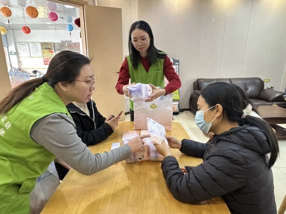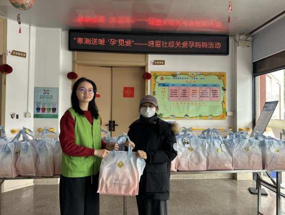 活动现场,社工们细心核对发放信息,并与孕妈妈们亲切交流,关心她们近期的身体状况与生活需求。同时,现场还设置了温馨互动环节,讲解冬季孕期保暖要点、待产物品准备清单及应急处理常识,叮嘱大家注意天气变化,做好防寒保暖,保持心情愉悦。