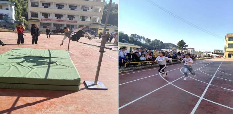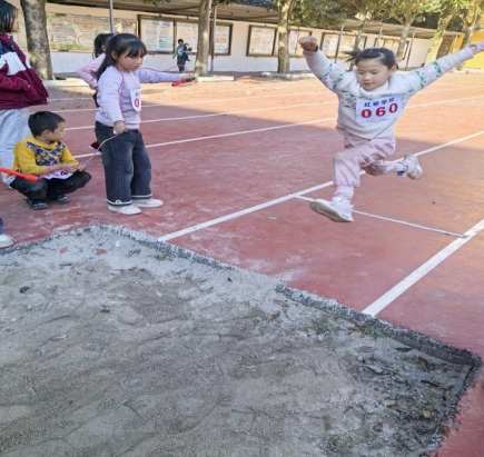 笔者获悉,该校是一所农村六年一贯制小规模学校,在校生仅140余人。然而,这次运动会参赛的学生竟高达120多人次。并且,比赛内容丰富,有田赛、径赛、趣味性活动。田赛项目有50米、100米、200米、400米、400米男女混合接力赛、中高年级组50米迎面接力跑、垒球、铅球等。径赛项目有跳高、跳远、跳绳。趣味性活动有垫乒乓球、拍篮球、踢球入框等。