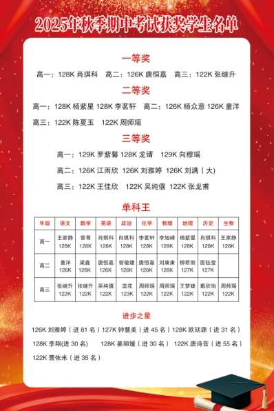 表彰环节星光闪耀,气氛热烈。学校对“学习标兵”“学科之星”“进步之星”等先进个人进行隆重表彰。在欢快的乐曲与阵阵掌声中,获奖代表依次登台领奖,一张张荣誉证书承载着辛勤付出,更点燃了全体学子的拼搏热情,彰显了我校“德才兼修、全面发展”的育人理念。