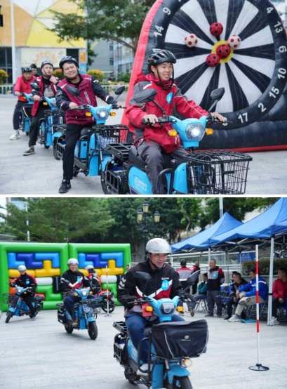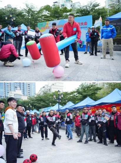 随后,骑手们投入到精心设计的趣味运动会中。运动会内容丰富多彩,涵盖交通法规常识问答、骑电动车绕障碍赛、足球飞镖、一锤定音、蹦蹦踩和俄罗斯方块等游戏环节。这些活动不仅考验骑手的专业技能和反应能力,还增强了团队协作精神。现场,骑手们热情高涨,呐喊助威声此起彼伏,将活动推向一个又一个高潮。尽管天气寒冷,但大家的参与热情丝毫不减,展现了骑手群体积极向上的精神风貌。