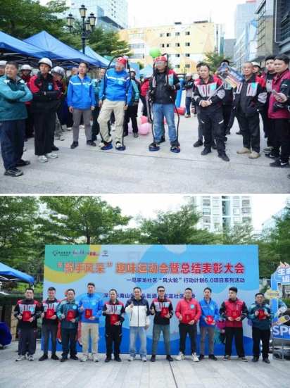 深圳市南山区马家龙社区"风火轮"民微项目收官活动于11月20日下午在南头城莲花广场举行,通过表彰"十佳快递员"和举办趣味运动会,为辖区骑手群体送上社区关怀。活动包含交通法规问答、电动车障碍赛等6项趣味竞赛,顺丰、京东等7家快递企业骑手参与,现场气氛热烈。社区党委通过此次活动强化了与新就业群体的联系,在寒冷天气中传递了温暖。
