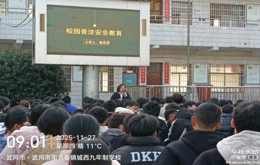 本网湖南讯(通讯员 李利亭)为进一步增强学生的法律意识和安全防范能力,营造和谐、健康、法治的校园环境,11月27日上午,湖南省武冈市政法委组织专家走进邓元泰镇城西九年制学校,为全校师生开展了一场生动且富有教育意义的校园普法安全教育讲座。