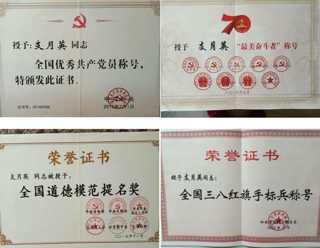 长期的高负荷运转,导致支月英身患高血压、甲减等疾病,2006年因视网膜出血,她的一只眼睛已经看不见东西;一只耳朵被一只硬壳虫钻进耳朵,因错过了最佳治疗时间,造成了失去一只眼的视力和一只耳朵的听力。从2003年起,上级教育部门多次要将她调到山下离县城更近的学校,都被她婉言谢绝。支月英对山区留守儿童身体力行的关心关爱,深深地感染了身边的人。白洋村村民李霞主动从广东返乡,来到白洋教学点当代课老师。据不完全统计,44年教育生涯,有1000多个孩子因为支月英走上了不同的道路,其中300多个留守孩子没有因为贫困而辍学。