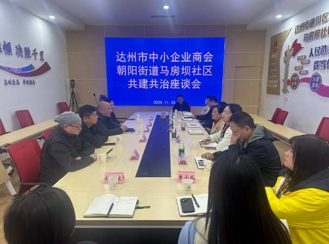 在随后召开的社商共治共建座谈会上,双方围绕"资源共享、优势互补、合作共赢"的核心主题展开深度交流。李涛会长首先代表达州市中小微企业商会,对马房坝社区在基层治理和民生服务领域取得的成绩给予高度评价。他指出,马房坝社区始终坚持以居民需求为导向,在惠民利民服务设施建设、社区治理创新等方面积累了宝贵经验,为商会参与社区共建提供了良好范例。商会作为连接政府、企业与社会的桥梁纽带,汇聚了众多中小微企业资源优势,此次考察旨在学习借鉴社区治理经验,探寻社商合作切入点,推动企业资源与社区需求精准对接。