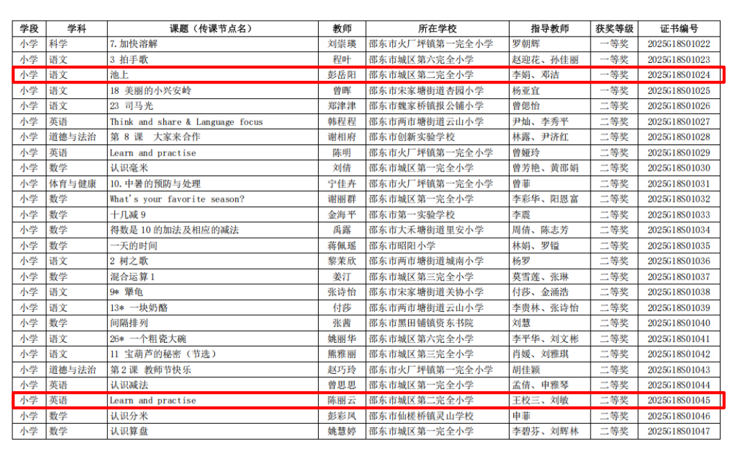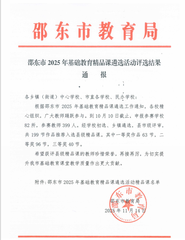 每一份荣誉的背后,都是老师们夜以继日的精心打磨,是团队协作的智慧结晶,更彰显了学校“深耕课堂、提质增效”的教育追求!未来,邵东市城区第二完全小学将继续深耕课堂,赋能教师专业成长,打造更多优质课堂,让教育之花绽放更绚丽的光彩!