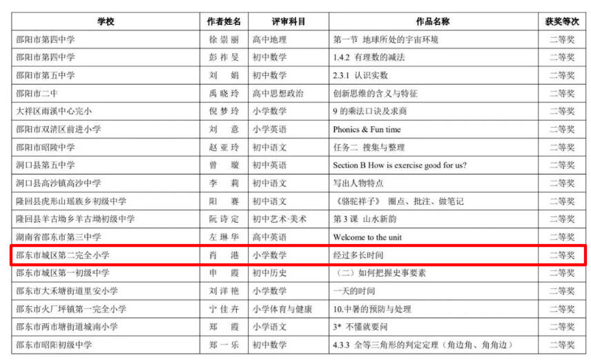 肖港老师的小学数学课《经过多长时间》荣获省级二等奖