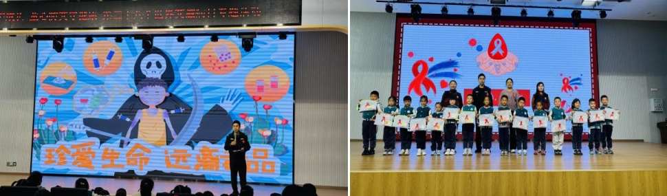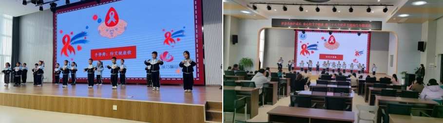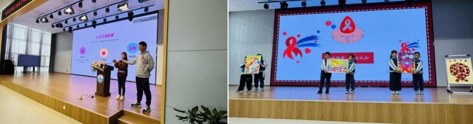 “防艾小能手,健康伴我走……” 小班、中班小朋友们带来的防艾儿歌传唱和手势舞表演,将活动气氛推向高潮。孩子们用稚嫩的声音、灵动的动作,把防艾知识融入文艺表演,感染力十足。大班小朋友则展示了 “拒绝坏病毒” 主题绘画作品,色彩斑斓的画面中,红丝带、防护小卫士等元素随处可见,尽显童真视角下的健康认知。