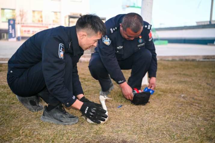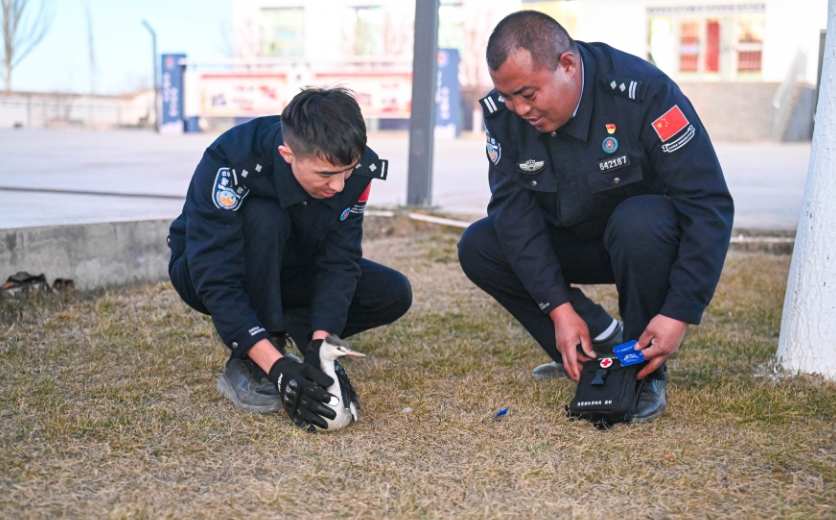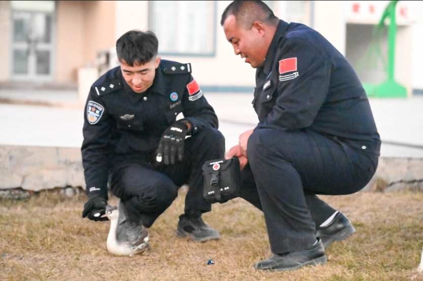 11月27日18时45分,新疆出入境边防检查总站克州边境管理支队膘尔托考依边境派出所民警在辖区巡逻过程中,发现一只翅膀受伤的“小鸭”,随即将其带回派出所。随后,民警对其伤口进行了的处理和包扎。