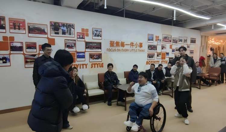 随后,在基地一楼大厅举行了简朴而温馨的爱心捐赠仪式。埃地沃兹代表向基地的残友赠送了日常生活用品,表达对残疾人群体诚挚的问候与支持。双方代表合影留念,定格了这段充满暖意的时光。