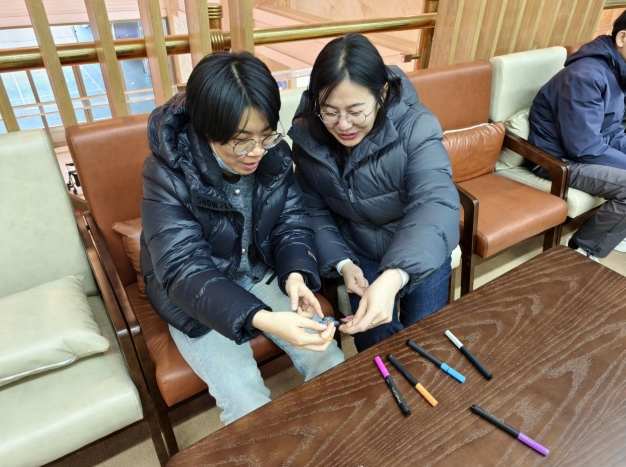 稍后的交流环节在温馨而活跃的气氛中展开。在ESG沙龙区,埃地沃兹的员工们与基地的残障朋友结对互动,共同体验了多项精心安排的活动。大家不仅品尝了如初咖啡由听障咖啡师精心调制的饮品,更在指导下参与了咖啡渣挂件DIY上色,亲身感受废弃材料焕发新生的创意乐趣。