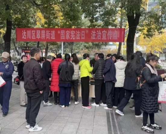 本网四川达州讯(杜靖宇 观理 报道)为深入学习宣传宪法,增强辖区居民法治意识,在第十二个“国家宪法日”来临之际,四川省达州市达川区翠屏街道在人保广场组织开展“国家宪法日”法治宣传活动。