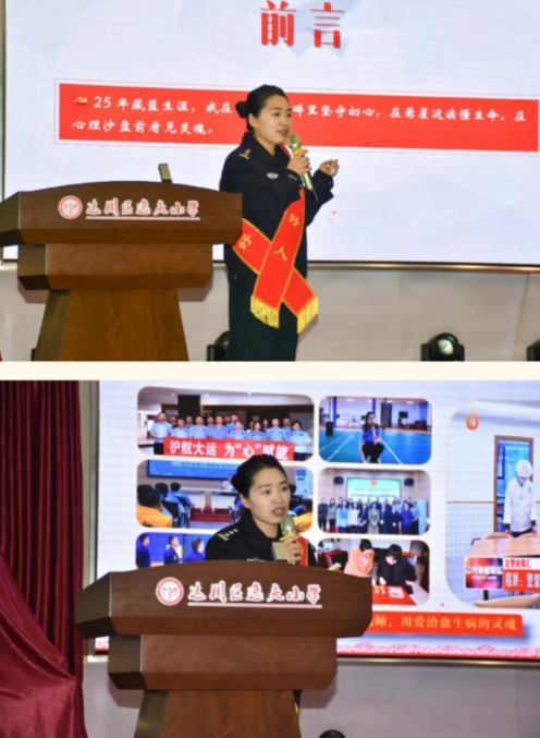程娇警官兼具警察与警营心理咨询师身份,英姿飒爽又温柔亲和。她以质朴语言分享经历,凭专业知识与耐心,成功挽留跳崖轻生者,成功处置29起轻生类警情,为29个家庭带去生的希望。“穿的是责任,做的是心灵守护”,她用专业与关怀践行生命承诺,让师生深切感受人民警察的铁骨柔情与担当。