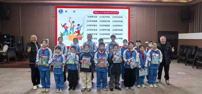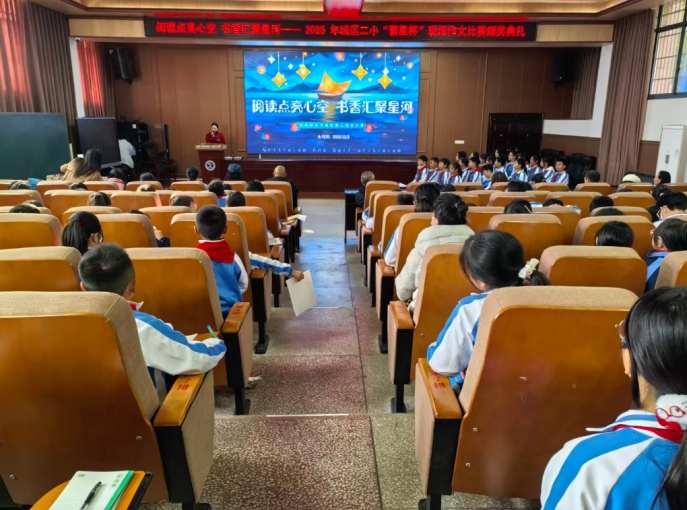 颁奖环节里,获奖选手依次登台,接过属于自己的荣誉。手中的证书,是努力的见证,厚实的书籍,更是他们在书香旅途中收获的“繁星点点”,为二小的星空增添了璀璨亮色。