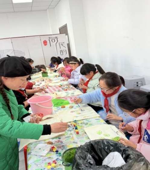 手工创作环节更是创意迸发。莲蓬灯制作区,孩子们巧妙利用莲蓬的天然形态,搭配灯带、流苏等装饰,将普通的植物器官变成了一盏盏精致灵动的小灯笼;莲藕作画区,大家手持切开的莲藕横截面,蘸取五彩颜料,在白色帆布包上轻轻拓印,瞬间绽放出形态各异的 “自然之花”。一个个独一无二的手工作品,不仅展现了孩子们的想象力与创造力,更让大家在动手过程中感受了荷藕的形态之美。