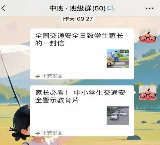 家园携手,方能共筑安全防护网。活动期间,各班通过班级群积极推送交通安全倡议书、警示教育片以及家庭出行小贴士,引导家长切实履行监护责任,将交通安全教育延伸至家庭场景。此外,园区门口还安排了志愿者常态化值守,在上下学高峰期疏导交通、提醒师生及家长规范出行,为孩子们的日常安全保驾护航。