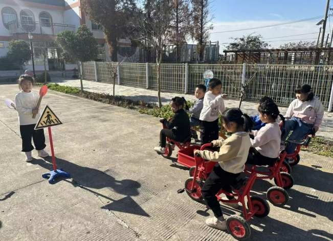 走出传统课堂,实践探索环节更是趣味十足。孩子们化身为 “交通安全小侦探”,在老师的带领下走进校园周边及社区,开启了一场寻找真实交通标识的奇妙之旅。他们用小小的相机认真记录下一个个 “安全密码”,并与交通标识合影留念,在亲身观察中真切感受交通规则与日常生活的紧密关联。与此同时,幼儿园的户外操场被精心打造成 “迷你交通场景”,斑马线、红绿灯等模拟设施一应俱全。孩子们推着玩具车,分别扮演 “小司机” 和 “行路人”,在逼真的场景中学习观察路况、礼让行人,在 “玩中学、学中悟” 的过程中,进一步深化了交通安全认知。