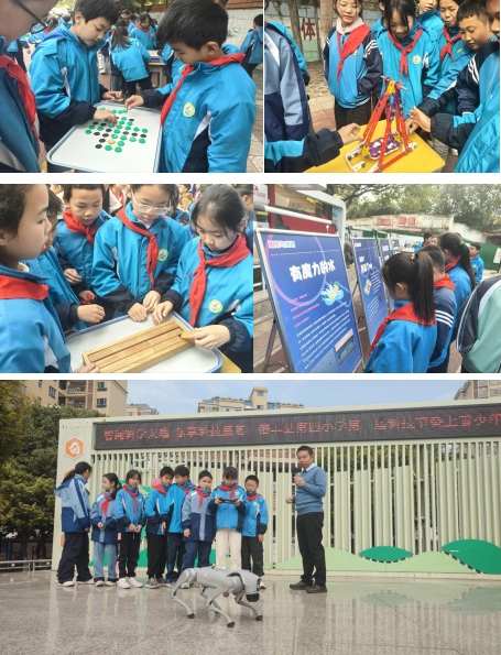 科技节还设有多个学生体验展区。在创意拼搭区,同学们围绕色彩丰富的模型展开观察与讨论,大胆提出构想,展现出丰富的想象力。科学小实验台前,孩子们亲手操作器材,在实践中领悟科学原理。知识展板区,“有魔力的水”等主题内容吸引众多同学驻足学习,拓展科学视野。尤为引人关注的是智能机器狗展示,同学们在专家指导下进行实操,近距离体验人工智能的魅力。