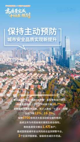 树牢底线思维,强化风险意识,严实防范管控措施,推动公共安全治理模式向事前预防转型。一是严密社会治安防控体系。建立完善“专业+机制+大数据”新型警务运行模式,构建“圈层布控、单元防控、要素管控”整体布局,科学调整社会面巡逻防控勤务等级,设置“1、3、5”分钟快速反应圈56个,刑事类警情较“十三五”时期下降10.7%。扎实开展社会稳定风险隐患专项整治、人员密集场所和重点部位安全防范等专项工作,强化护校安园,推动平安医院建设,织密社会治安“防控网”。二是筑牢公共安全监管防线。系统开展安全生产治本攻坚三年行动,深化阻塞消防通道、电动自行车上楼等隐患排查整治。排查整改道路交通安全隐患36.2万余处,加强农村地区交通安全管理,常态化开展“飙车炸街”专项整治,依法查处酒驾醉驾交通违法行为10万余起,全市道路交通事故起数、死亡人数较“十三五”时期分别下降13%、16.7%。全流程动态监管枪支弹药、散装汽油等重点物品,优化大型活动审批监管模式,保障6700余场次大型活动安全顺利举办。三是完善灾害风险防范机制。开展自然灾害综合风险普查,推进地震易发区房屋设施加固、防汛抗旱等重点工程建设,连续五年为市民投保灾害民生综合保险,救助各类受灾群众1.4万余户。建成国家级城市安全风险综合监测预警平台,稳步推进“陆海空”立体救援网格建设,打造市域“十五分钟应急救援圈”,创建综合减灾示范社区503个,占社区总量的24.2%,3个区获评国家级、省级综合减灾示范县。