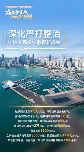 平安是最大的民生福祉,是最基本的发展环境。“十四五”时期,全市各级各部门单位坚持以新时代中国特色社会主义思想为指导,深入践行以人民为中心的发展思想,全面深化平安青岛、法治青岛建设,全市社会大局保持稳定,社会治安稳中向好,法治环境更加优化,获评全国法治政府建设示范市、全国社会治安防控体系建设示范城市。主要有五个方面工作: