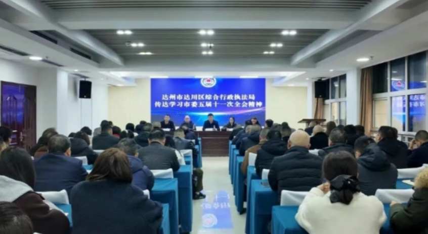 本网四川达州讯(杜靖宇 报道)12月9日,达州市达川区综合行政执法局召开干部职工大会,传达学习市委五届十一次全会精神,研究贯彻落实措施。局党组书记、局长周跃文主持会议并讲话,机关全体干部职工、各直属单位班子及办公室主任参加会议。