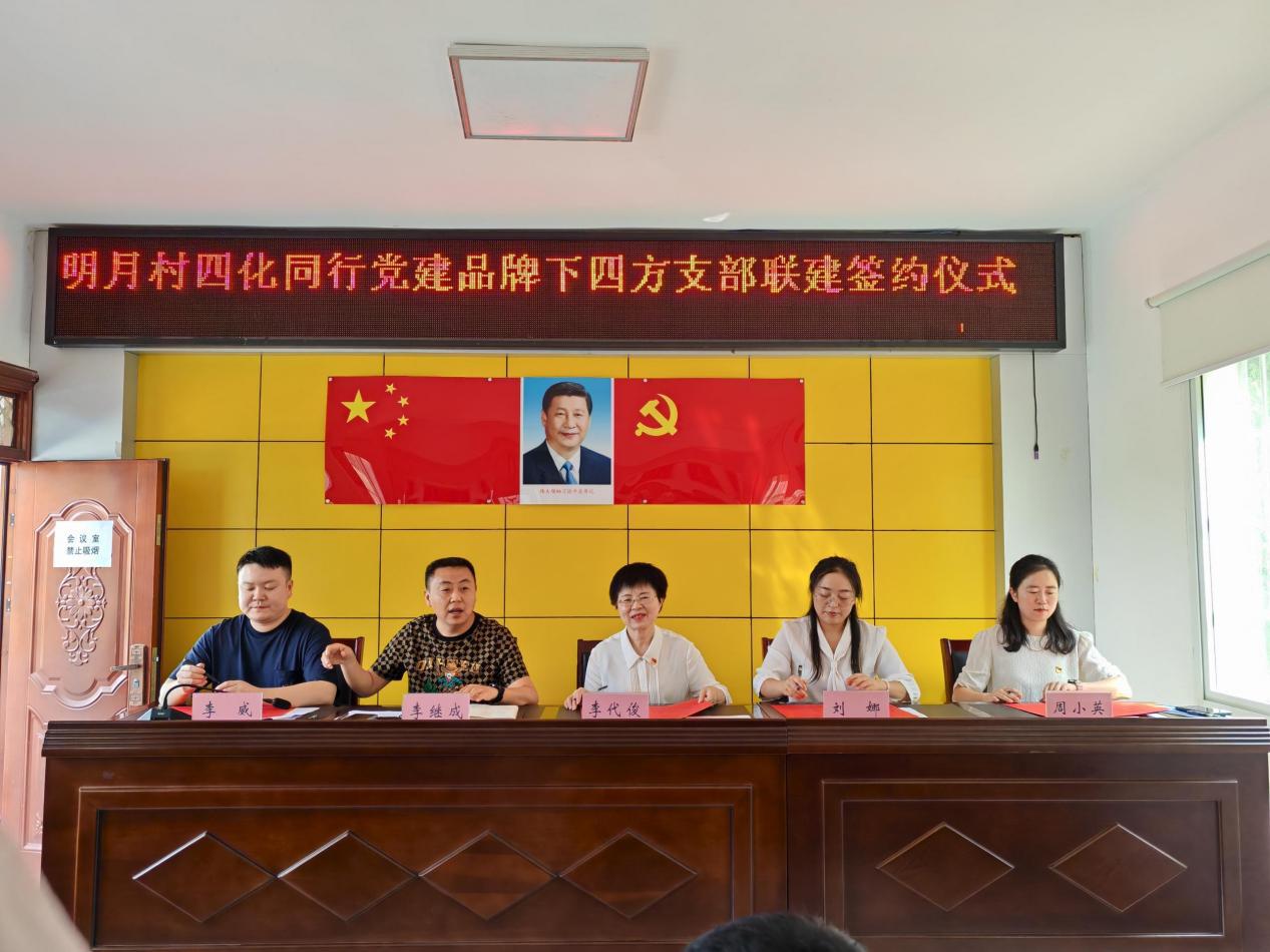 深化支部联建扩面:明月村依托“四化同行”党建品牌积极开展 “支部联建” 活动,先后与中共广元市朝天区委组织部机关支部委员会、中共广元市朝天区朝天镇明月村支部委员会、中共四川财经职业学院会计学院审计教研室支部委员会、中共中移集团四川公司朝天分公司支部委员会等建立合作关系。四化同行”党建品牌中,“四化”分别代表组织建设标准化、产业发展协同化、党建业务融合化、服务群众实效化。“同行”寓意“政、地、校、企”四方党组织携手共进,在党建工作的道路上并肩前行。旨在实现四方党组织优势互补、资源共享、协同发展,推动党建与乡村振兴、企业发展、教育事业深度融合,打造具有示范引领作用的基层党建新标杆,为明月村发展提供坚强组织保障和强大发展动力,形成可复制、可推广的党建经验模式。其中整合四方资源,打造了集党员学习教育、活动开展、服务群众等功能于一体的综合性四川财经职业党员乡村振兴实践基地,为党员提供良好的学习和活动场所。四川财经职业学院更是持续加大帮扶力度,党委书记、院长等多次带队赴村调研,不仅赠送党建系列经典图书提升党建水平,多次组织农业专家教授到明月村开展农业技术培训,更推动高校资源与村里需求精准对接,为产业发展、人才培育等提供全方位支持。