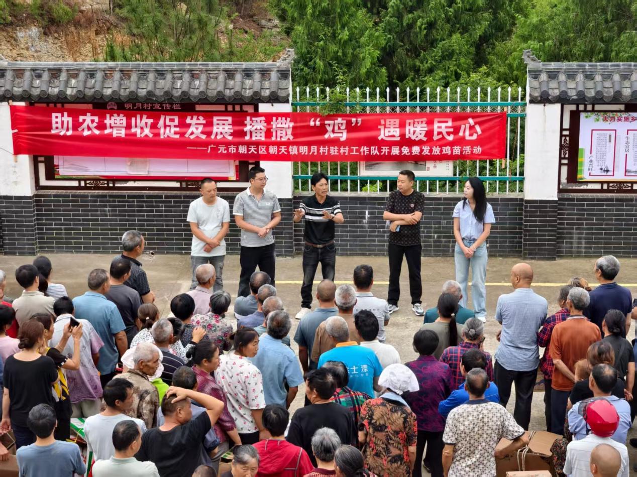 庭院经济精准赋能农户:针对村民分散经营的特点,帮扶共同体推出 “鸡苗 + 技术 + 保障” 全链条帮扶模式。朝天区委组织部与四川财经职业学院联合驻村工作队开展 “助农增收促发展,播撒‘鸡’遇暖民心” 活动,为 208 户村民发放 1000 余只抗病力强的优质鸡苗。发放现场不仅安排技术人员讲解养殖要点,还建立 “一对一” 技术跟踪服务机制,驻村干部每周入户查看养殖情况,全程把控防疫与出栏环节。监测户杨志珍凭借养鸡去年增收三千余元,针对残疾人刘江一等特殊群体,驻村工作队为其协调 5 万元创业资金,指导建设标准养殖场,带动其养殖肉羊、生猪和鱼类,实现人均纯收入近万元。