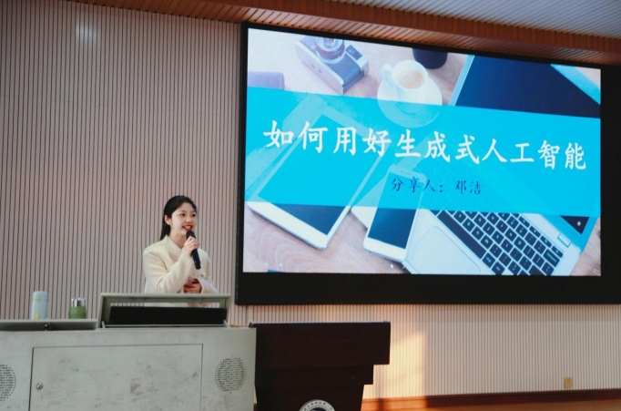 培训中,邓洁老师以“如何用好生成式人工智能”为核心,重点介绍了精准提示语的设计方法,提出“角色+背景+任务+要求”的实用公式,并结合实际案例说明其效果。她还推荐了豆包、希沃白板、元宝、百度图片等多款适用于教学场景的AI工具,帮助教师快速上手。