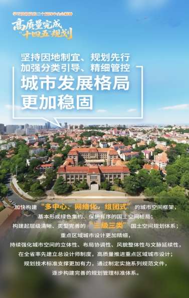 总书记强调,统筹规划、建设、管理三大环节,提高城市工作的系统性。“十四五”时期,青岛深入贯彻总书记关于城市工作的重要论述,全面践行人民城市理念,坚持高标准规划、高质量建设、高水平管理一体推进,不断完善城市功能、提升环境品质、增强承载能力,推动城市宜居宜业宜游水平显著提升,助力现代化国际大都市建设不断取得新成效。