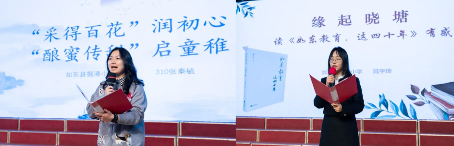 读书是教师最长远的备课,经典则为教育理想筑牢根基。活动现场,张秦毓、陆宇琦两位教师率先分享读书故事。张秦毓深耕《给教师的建议》《儿童心理学》等专业著作,从中萃取教学智慧,巧妙破解课堂难题,让学生在轻松氛围中爱上表达;陆宇琦受《如东教育,这四十年》中马塘中学葛家梅书记先进事迹的感召,将 "灵动课堂" 理念深度融入科学教学,为传统课堂注入创新活力,助力教学变革走深走实。