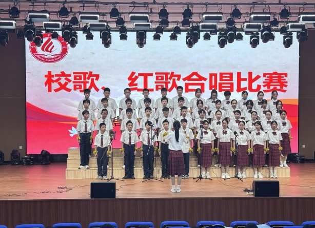比赛在校歌《四中有我》的旋律中拉开帷幕,各班级以饱满的深情唱响对母校的热爱与自豪。随后,《歌唱祖国》《保卫黄河》《国家》等经典红歌接连上演。同学们精神昂扬,歌声铿锵,充分展现了出色的艺术素养与集体凝聚力。